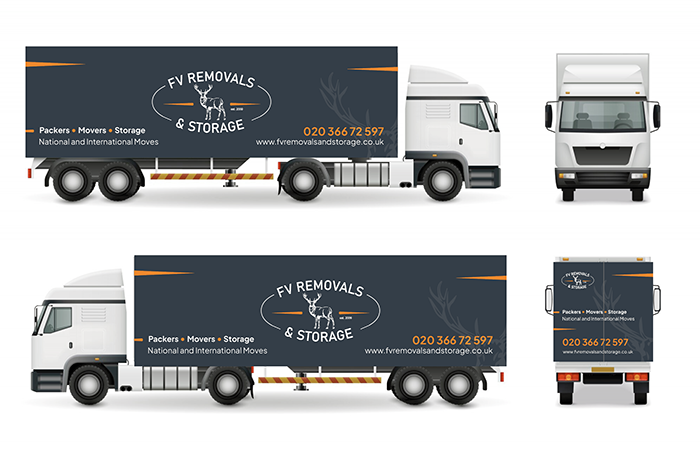 FV REMOVALS – identyfikacja wizualna dla firmy przeprowadzkowej.