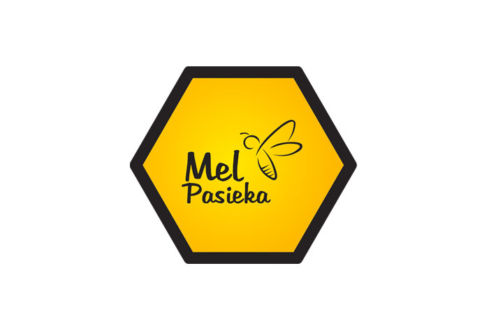 Projekt logo dla Pasieki Mel. Firma zajmuje się produkcją i sprzedażą miodu.